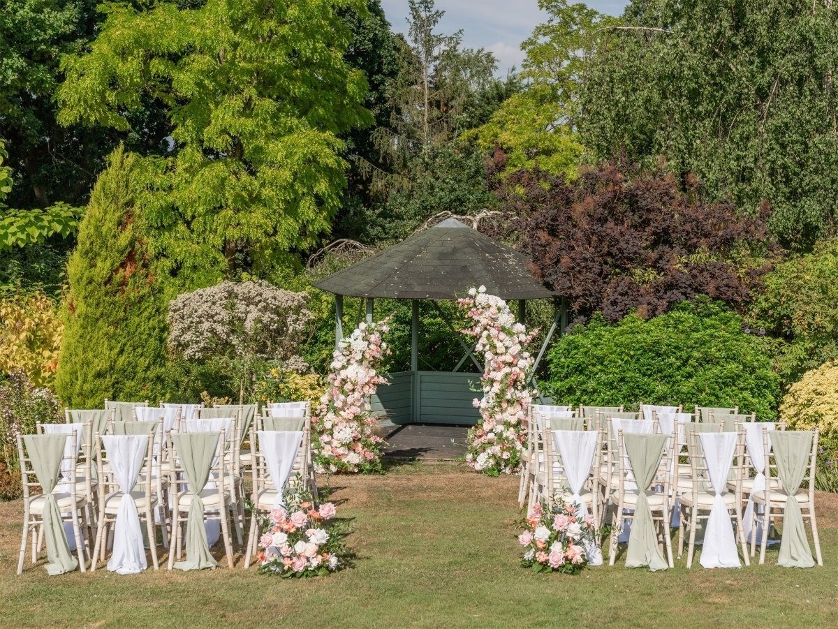 Wedding ceremony flowers at Bromley Court Hotel, Kent